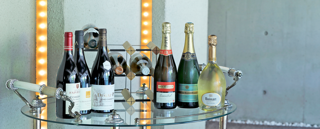 ワインは世界各地から厳選した銘柄を取り揃え、ソムリエが一皿ごとに最適なペアリングをご提案いたします。